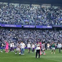 Pero ese blanco y violeta tuvo tonalidades de grises. Porque durante 80 minutos el partido fue malo, tremendamente malo. Impropio de un equipo que se jugaba el ascenso frente a otro casi desahuciado. Hubo grises porque la relación de la grada con el equipo, y sobre todo con el técnico, eran complicadas, por no decir irreconciliable. (Veremos cómo se restañan estas heridas para la próxima temporada).